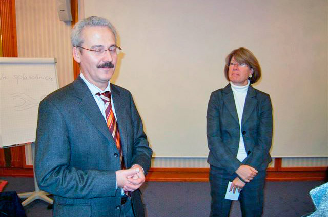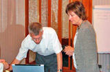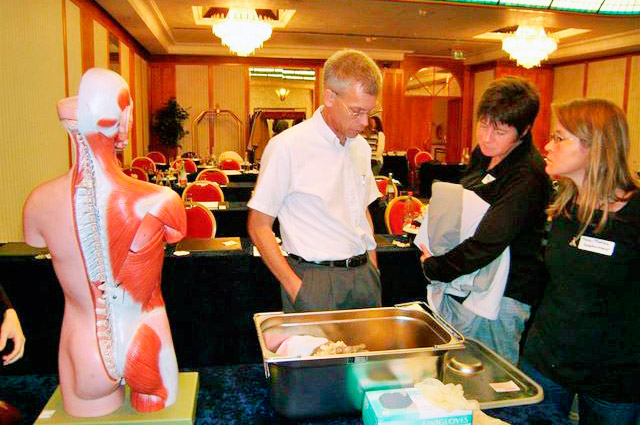 Pictures from the seminar “Anatomy for Translators” in Heidelberg. Sabine Grömansberger, family physician in a group practice in Siegburg, demonstrated a physical examination and explained how a discharge record is written. Dr. Uwe Grömansberger of the Helios-Klinik in Bonn presented a lecture on laparascopic gall bladder surgery and on the Whipple procedure for pancreatic cancer.